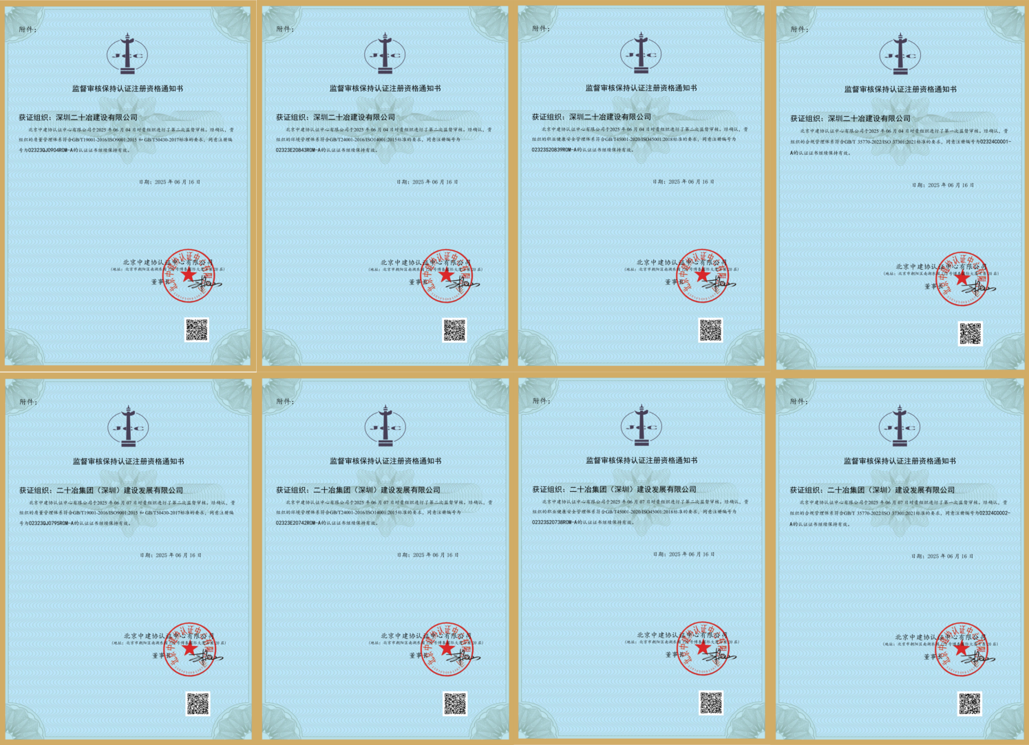 6月23日,經北京中建協認證中心專家組認證,深圳二十冶建設有限公司、二十冶集團(深圳)建設發展有限公司順利通過ISO9001:2015質量管理體系、ISO14001:2015環境管理體系認證、ISO45001:2018職業健康安全管理體系和ISO37301:0221合規管理體系等四項管理體系2025年度監督審核。